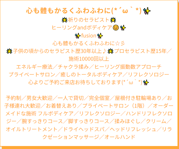 心も体もかるくふわふわにをテーマにサロンをしております(*´ω`)✨